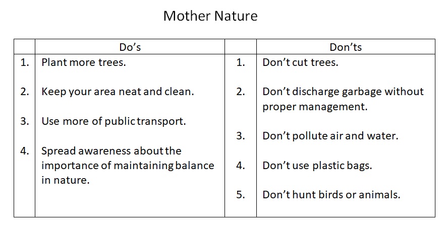 Nature is abode for all of us. It provides us with all our basic needs. However, we must take care of the following things so that our mother nature is not harmed.